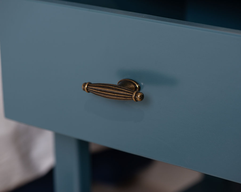 Son piètement sculpté, ses poignées en laiton et son bleu profond apportera un vrai cachet à votre chambre.